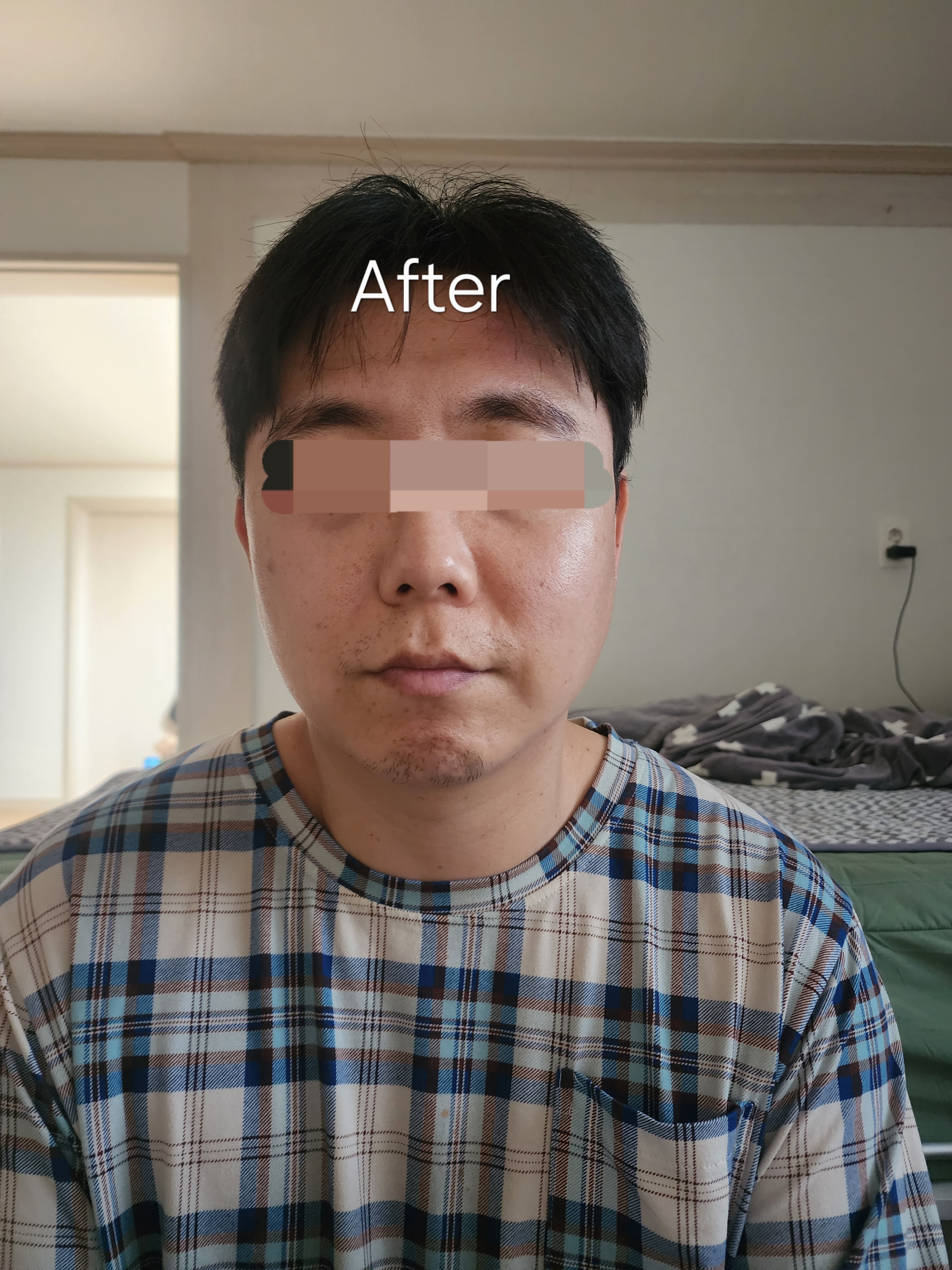 저희 신랑은 오른쪽을 많이 사용하지 않아 왼쪽보다 턱 발달이 덜되어 더 비교적 갸름한 비대칭 얼굴형이에요!사진을 보셨을 때 오른쪽을 봐주세요!